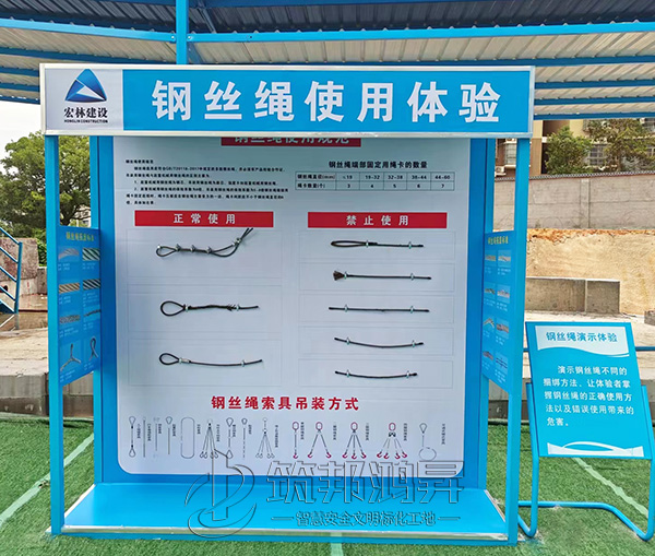 此次合作的工地安全體驗館建設包括了鋼絲繩使用體驗、綜合用電演示體驗、滅火器演示體驗、平衡木體驗、安全防護用品展示體驗、安全帽撞擊體驗等。