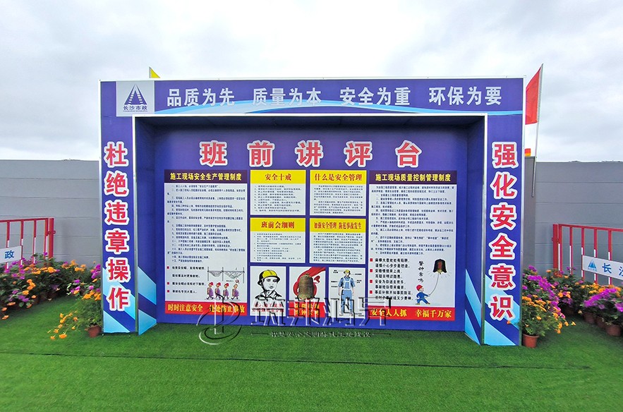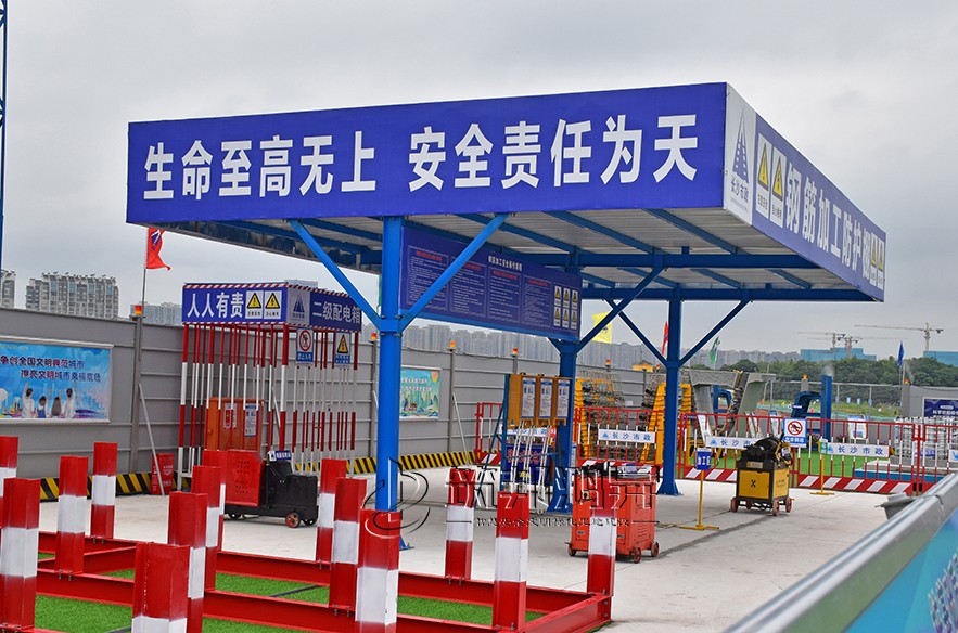 6月21日,2022年長沙市建筑工程質(zhì)量管理和安全生產(chǎn)標準化觀摩會在長沙市市政工程承辦的靳江河西岸綜合整治工程設(shè)計施工總承包(EPC)項目舉行。筑邦鴻昇系列文明標化產(chǎn)品助力。