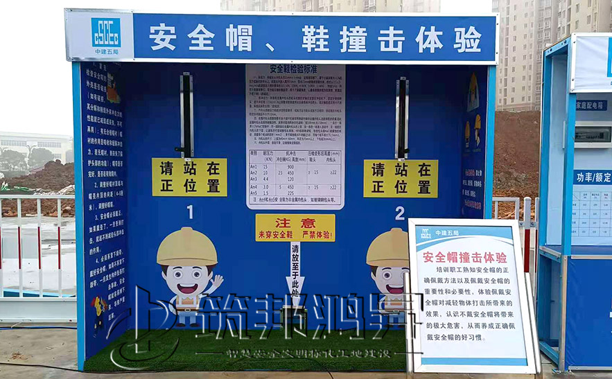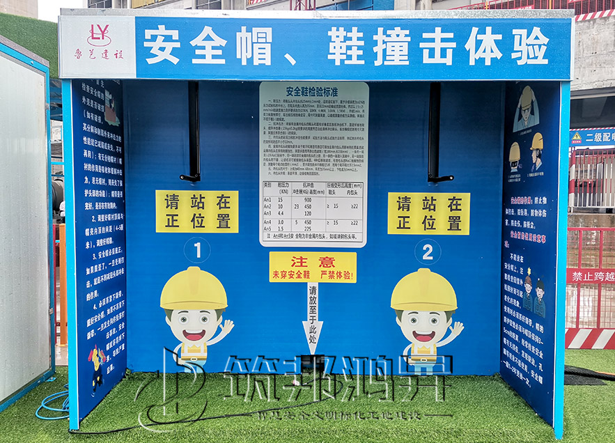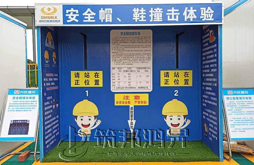 【筑邦鴻昇】實體安全體驗館-安全帽、鞋撞擊體驗將安全帽撞擊體驗設(shè)備和安全鞋撞擊體驗設(shè)備融合在一起,兩者功能通用,更加方便,更加實用,為客戶省錢。