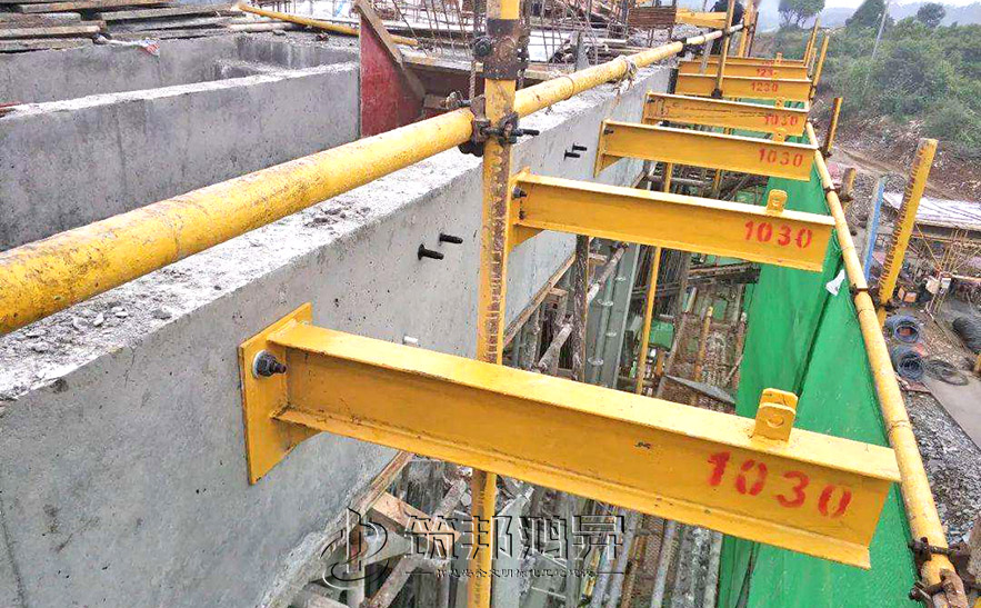 【筑邦鴻昇】新型拉桿式工字鋼懸挑架,通過高強(qiáng)螺栓與結(jié)構(gòu)框架梁錨固,并在前端設(shè)置可調(diào)拉桿與上一層建筑結(jié)構(gòu)連結(jié),形成可承擔(dān)荷載的一次超靜定結(jié)構(gòu)體系。