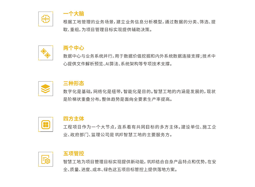 【筑邦鴻昇】智慧工地管理系統(tǒng)平臺(tái)圍繞工地現(xiàn)場(chǎng)人、機(jī)、料、法、環(huán)五大生產(chǎn)要素,綜合運(yùn)用“BIM、AI、機(jī)器人、邊緣計(jì)算、無(wú)人機(jī)、5G、XR、區(qū)塊鏈”八大信息技術(shù),通過(guò)數(shù)字化、網(wǎng)絡(luò)化、智能化實(shí)現(xiàn)項(xiàng)目全局優(yōu)化,保障工程質(zhì)量、安全、進(jìn)度、成本等管理目標(biāo)的順利實(shí)現(xiàn),助力您的項(xiàng)目成為智慧文明安全工地,在省優(yōu)市優(yōu)文明工地評(píng)選中占據(jù)優(yōu)勢(shì)。